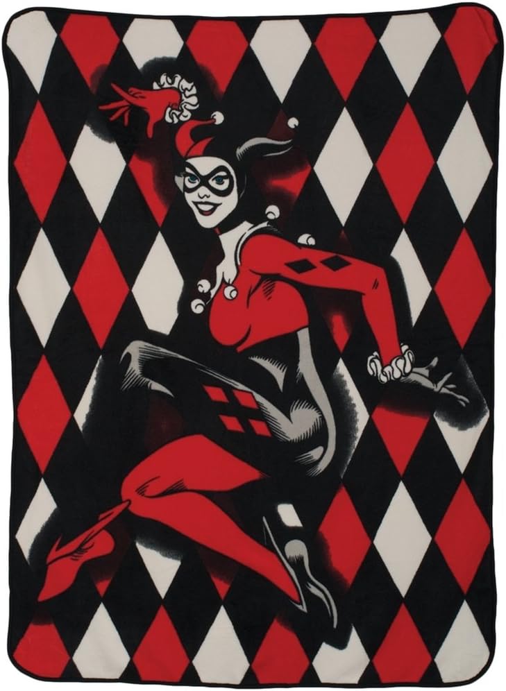 Harley Quinn Throw: Throw blanket plush quinn customized funny harley sofa print soft demand for diy 3d character.